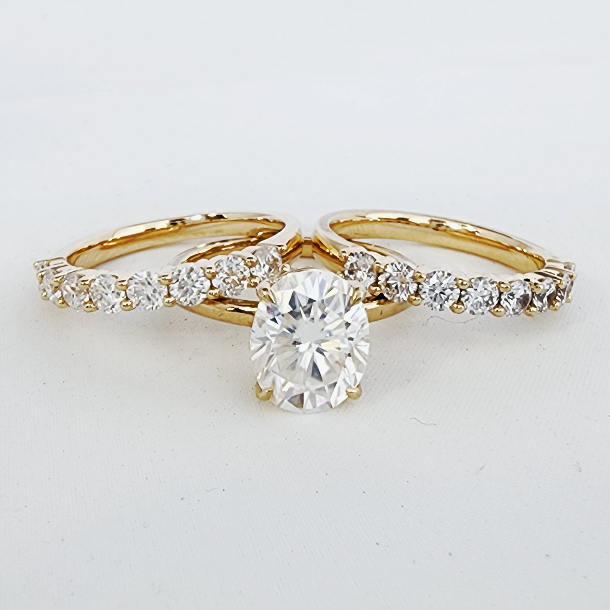 You can also choose to have a D VS1 Moissanite as your gemstones or upgrade to a F VS1 Lab created Diamonds. Either option is a truly beautiful gemstone. Your 3ct centre gemstone will come with an international gemstone certificate with either choice. Just hit the tab above