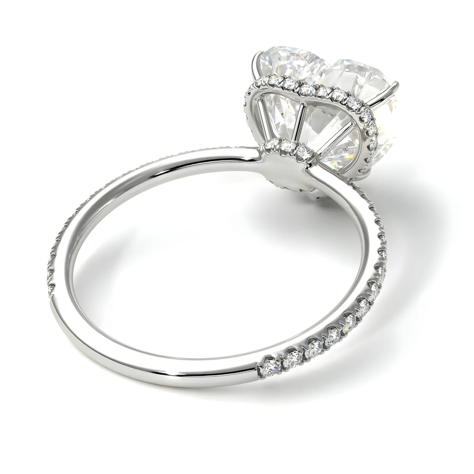 This heart gemstone is nesting on a fine 14k white gold band, set with a dainty hidden halo and accent diamonds in the band.