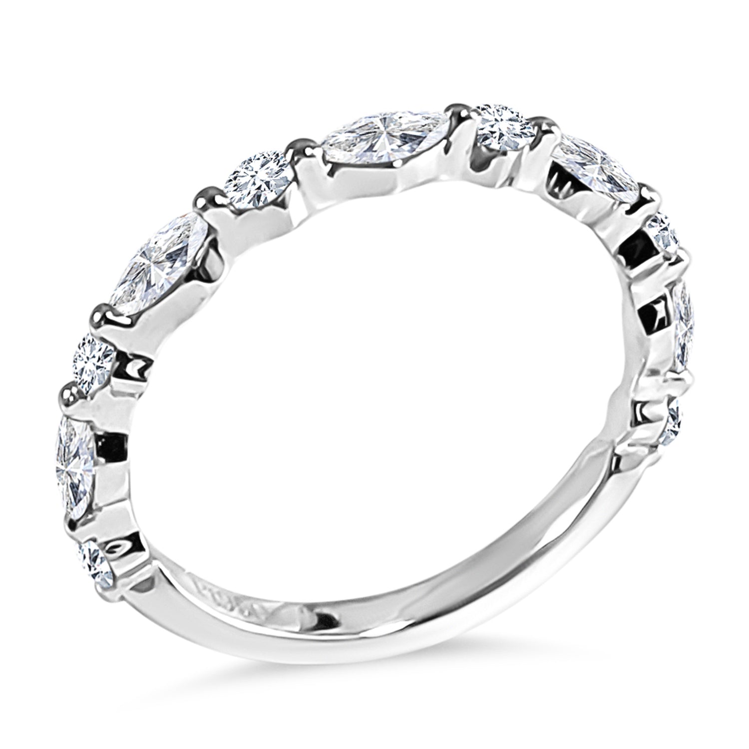 Beautiful Marquise cut wedding band. This beauty has 5 Marquises cut and 6 round cut colourless gemstones.