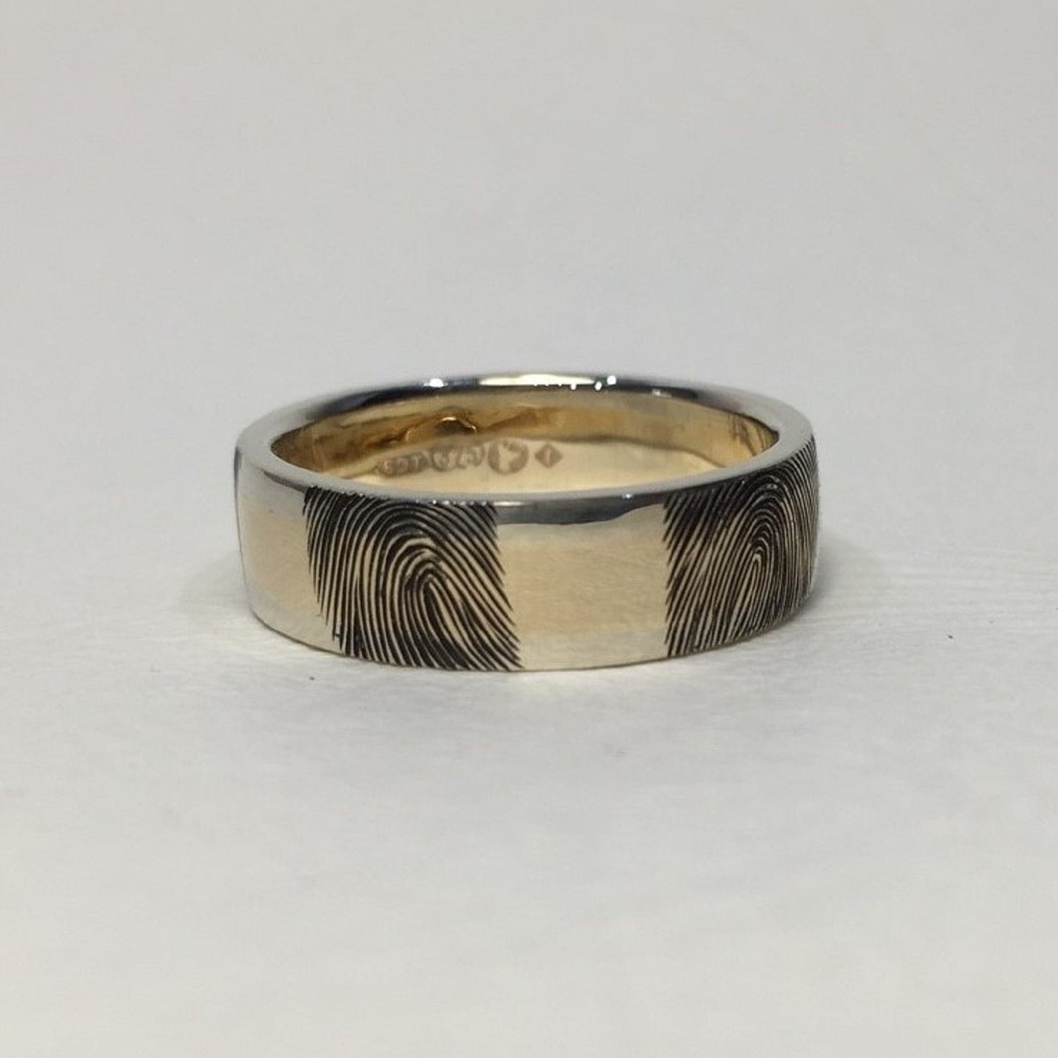 Men's wedding Ring with her Finger Print engraved on.
