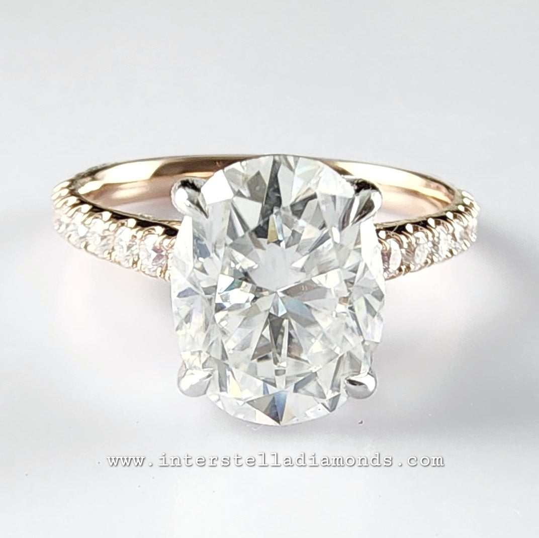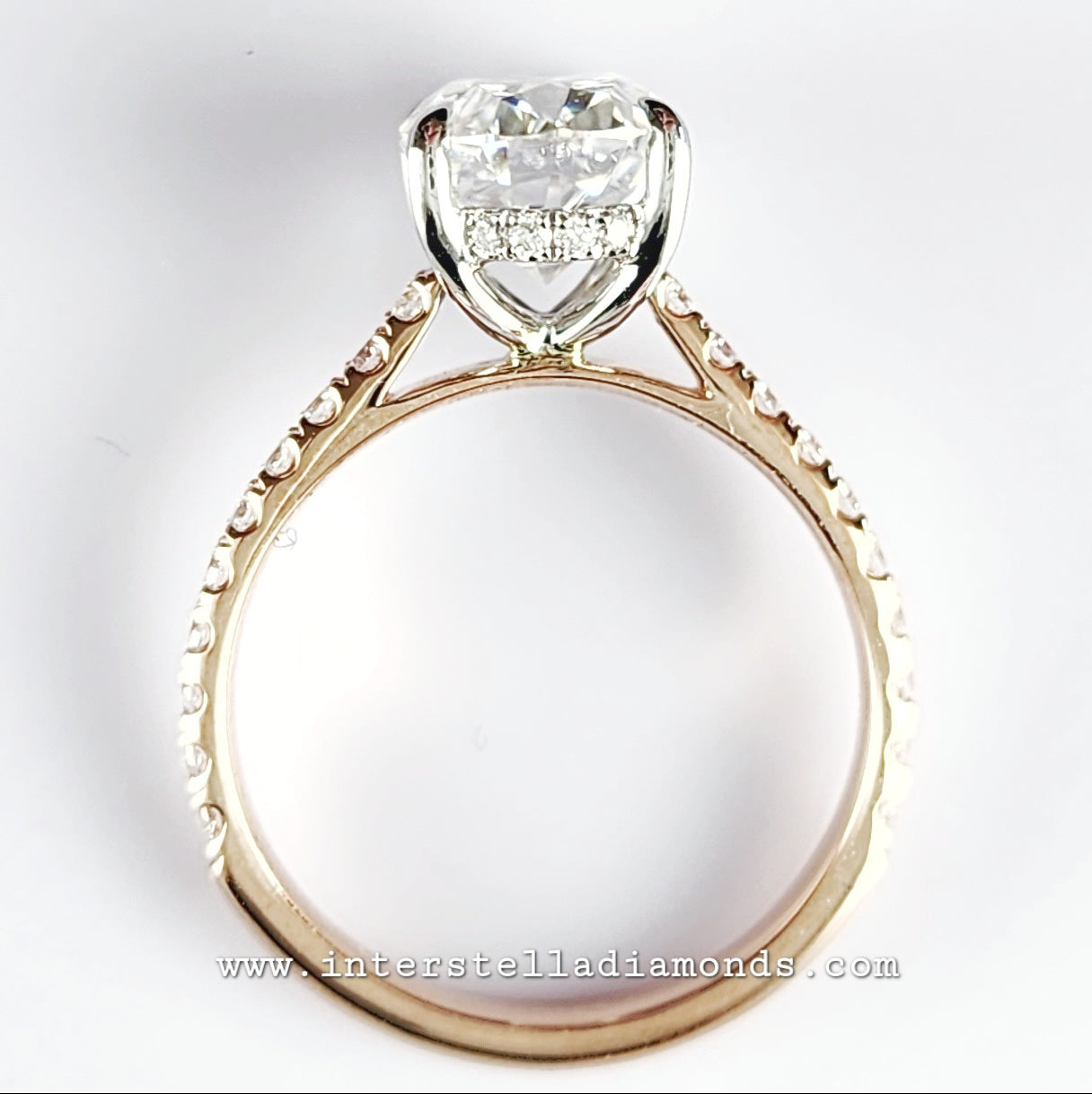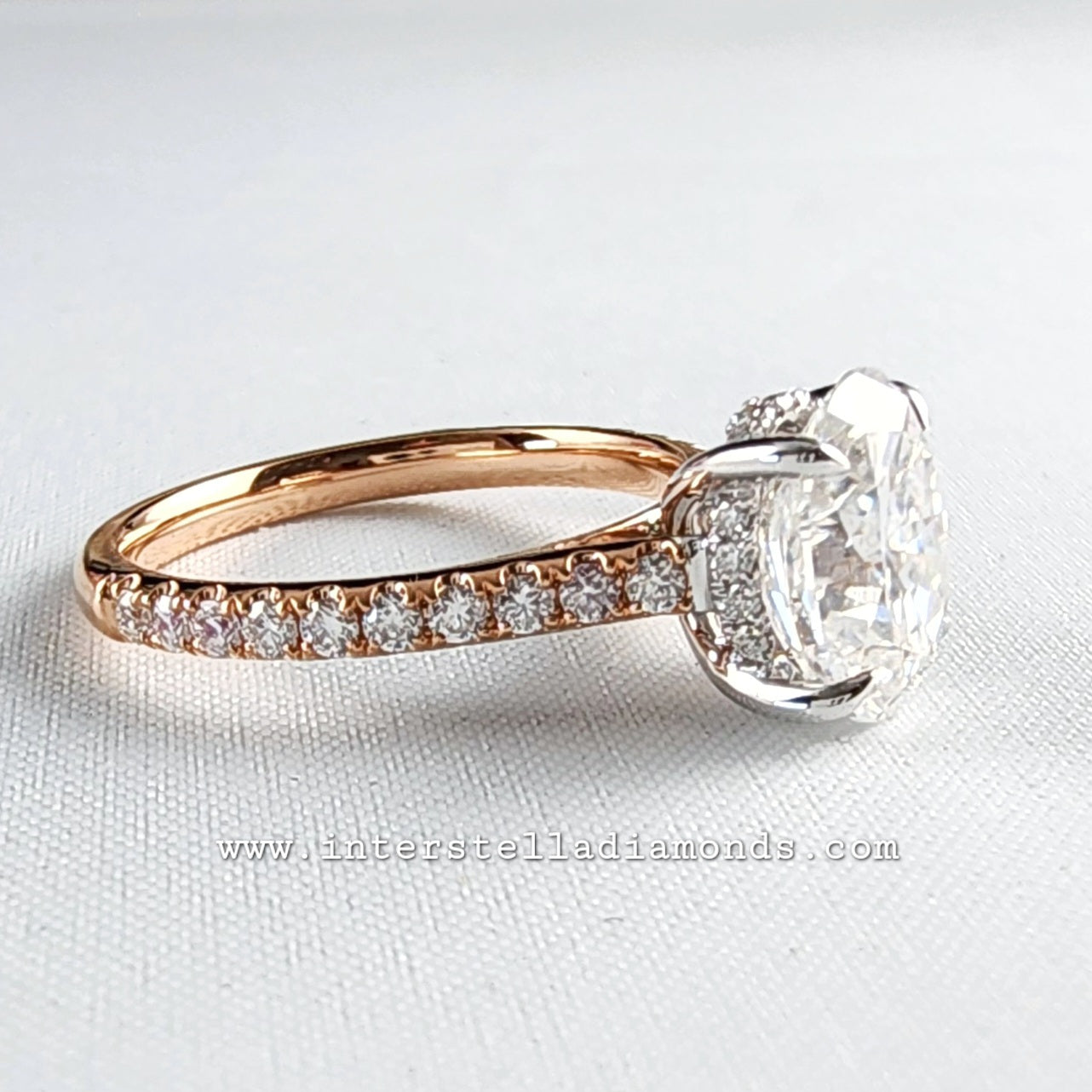 Stunning 2.4ct Oval cut Engagement Ring, with hidden halo. and 16 gemstones in the band.