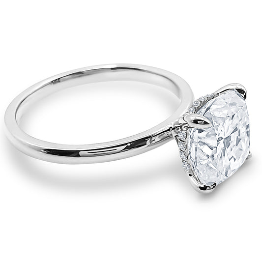 Cushion Cut Solitaire 2.95ct Engagement Ring. Lab Diamond or Moissanite